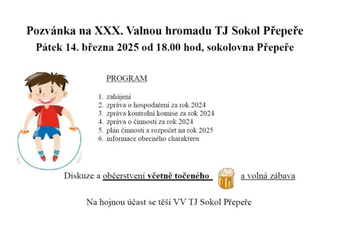 K tanci a poslechu hraje skupina ADAPTACE. Akce se koná v sobotu 15. března 2025 od 20:00 v sokolovně v Přepeřích. Vstupné je 200,-Kč. Vstup do sokolovny bude umožněn od 19:15.