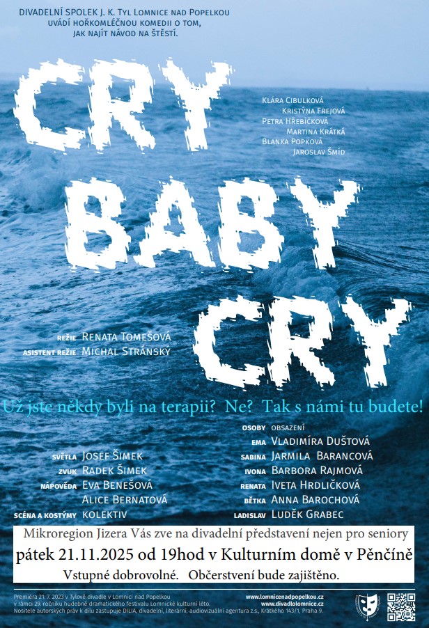 Dobrovolný svazek obcí Mikroregion Jizera a obec Přepeře zve nejen seniory z naší obce na divadelní hořkomléčnou komedii „CRY BABY CRY“