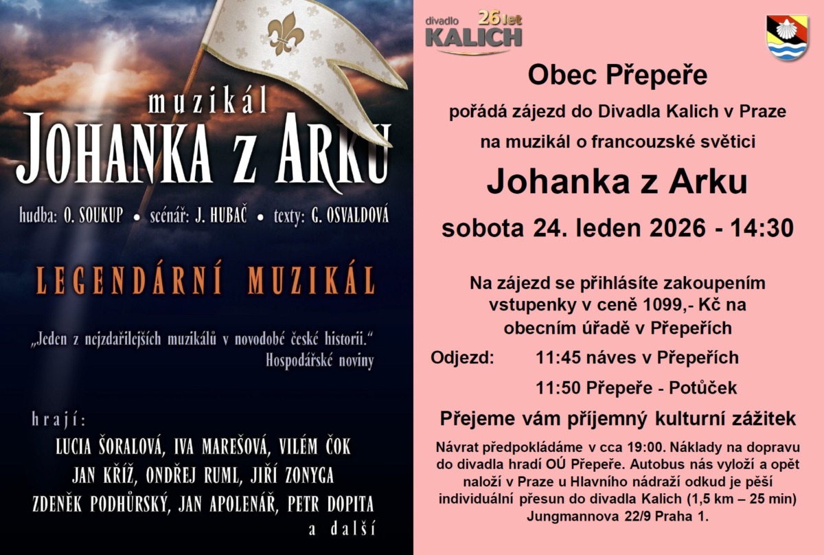 Obec Přepeře pořádá zájezd do Divadla Kalich v Praze na jeden z nejúspěšnější českých muzikálů – Johanka z Arku.