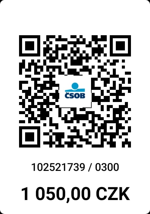 - Po zvolení správné velikosti se zapíšete na OÚ do hromadné objednávky, necháte kontakt na sebe a zaplatíte zálohu 1.050,- Kč (QR kód pro platbu převodem). Cena trika se očekává kolem 1.100,- Kč (konečná cena závisí na množství v celé objednávce, požadovaných grafických úpravách a variantě provedení). Přesnou cenu budeme znát až po objednání.